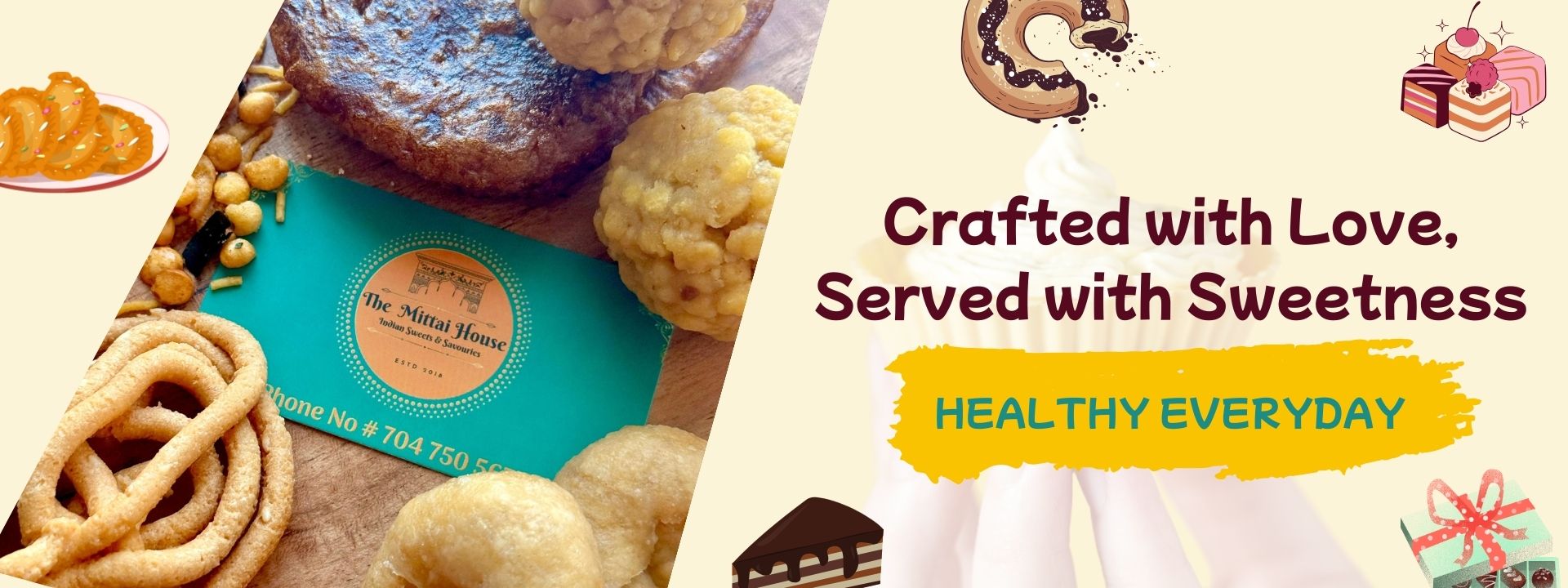 At Mittai, we believe every sweet should tell a story — a story of tradition, care, and purpose. From the very first bite, you’ll taste not just flavor, but values we proudly live by: